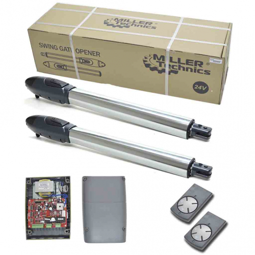 1. Привод Miller Technics 5000 - 2 шт. Двигатель привода Miller Technics 5000 рассчитан на напряжение 24 Вольт, что и является залогом безопасности данной модели. Его тяговое усилие достигает 4000 Н. Такого нет ни у кого из конкурентов. Мощность двигателя 150 Вт; он так же значительно больше модели Miller_Technics_4000.
