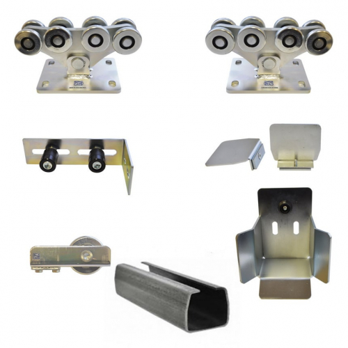 Две роликовые каретки. Их главная особенность – это полностью беззвучная работа, которая достигается благодаря инновационным подшипникам. Их герметичность не позволят песку, влаге и пыли попадать в подшипники, чем продлит срок службы всей системы. Сами каретки имеют широкий температурный диапазон от -30 до +80 градусов. Особенностью этих кареток является наличие 10 отверстий на площадке. Они нужны для более удобной регулировки роликовый опор по высоте. Дополнительно рекомендуем приобрести подставки под роликовые опоры. Они помогут Вам отрегулировать высоту кареток.